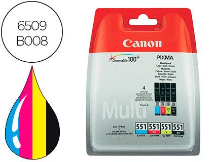 Ink-jet canon 551 c/m/y/bk pixma ip8750 / ix6850 / mg5550 / mg6450 / mg7150 / mx725 / mx925 pack 4 colores