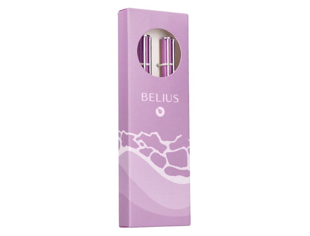 Juego boligrafo y roller belius endless summer aluminio color morado y plateado tinta azul caja de diseño