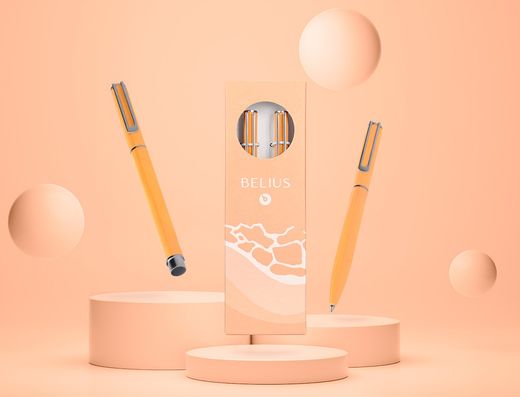 Descubre el juego de bolígrafo y roller Belius Endless Summer, con un vibrante color naranja y detalles plateados. Presentado en una caja moderna, estos instrumentos de escritura evocan la alegría del verano. La tinta azul fluye suavemente para plasmar tus pensamientos. | Referencia Deskidea: 168894