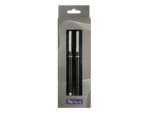 Descubre la elegancia del juego de bolígrafo y roller Belium Norwich con cuerpo negro mate y detalles cromados satinados. Perfecto para esos momentos especiales, viene presentado en una hermosa caja regalo que hará de cualquier ocasión un instante memorable. | Referencia Deskidea: 166000
