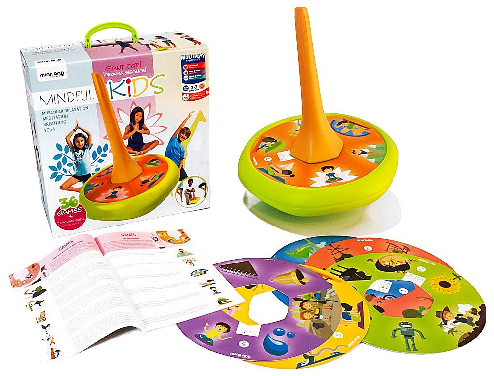 Juego didactico miniland mindfulnes con peonza gigante y guia de ejercicios