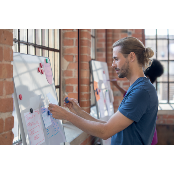 - Flexibilidad y colaboración, con espacio para hasta 4 pizarras blancas de doble cara.