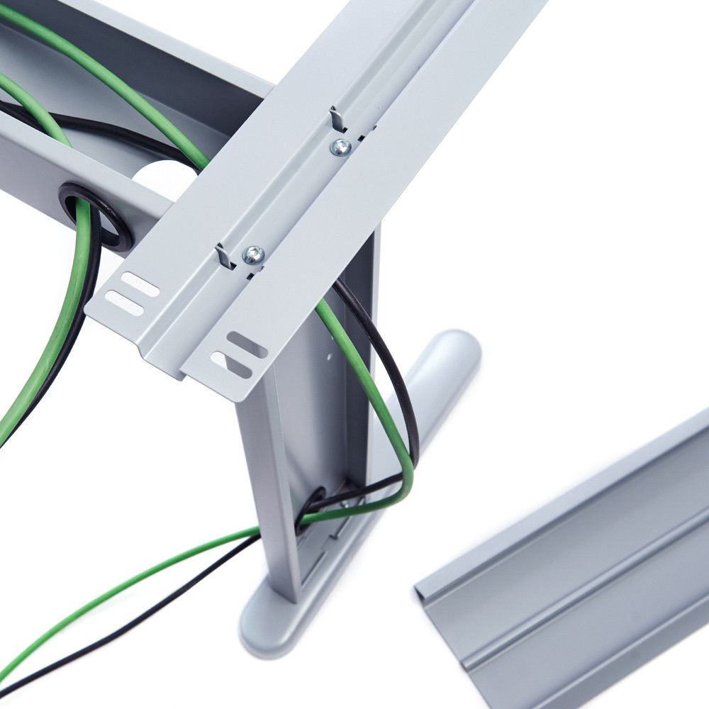 Transforma tu espacio de trabajo con el Kit Metal Ajustable Ala. Su elegante diseño antracita y gris se adapta a cualquier ambiente, mientras que su sistema de electrificación interna asegura un orden impecable. Con altura regulable, es la opción ideal para todos. | Referencia Deskidea: RCD2102ACRY02