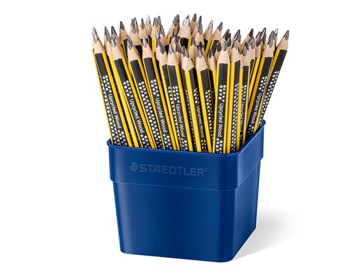 Lápices de grafito gruesos, de diseńo triangular ergonómico. Lápiz ecológico, fabricado con upcycled wood. Gracias al upcycling conservamos árboles y conseguimos dar un nuevo uso a los restos de la madera en forma de lápices staedtler de alta calidad. Contenido de madera procedente de bosques con certificación pefc. Hb bote expositor con 72 lápices de grafito 119. | Referencia Deskidea: 173798