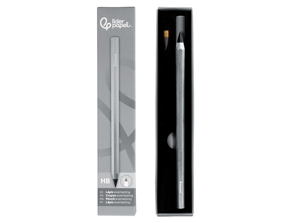 Lapiz de grafito infinito liderpapel aluminio hexagonal plateado ultra resistente 1 punta de recambio