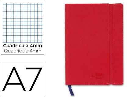 Libreta Liderpapel Simil Piel A7 120 Hojas 70G/M2 Cuadro 4Mm Sin Margen Rojo