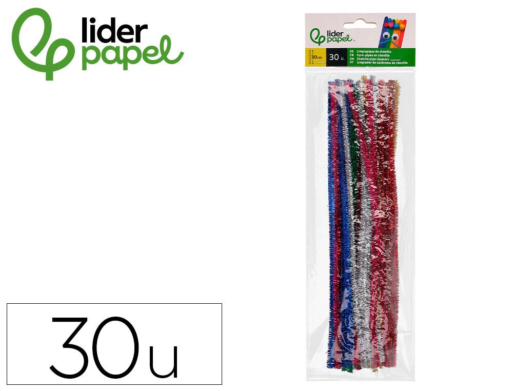 Limpiapipas de chenilla liderpapel 30 cm colores brillantes surtidos bolsa de 30 unidades