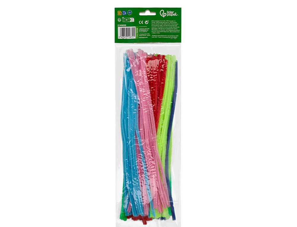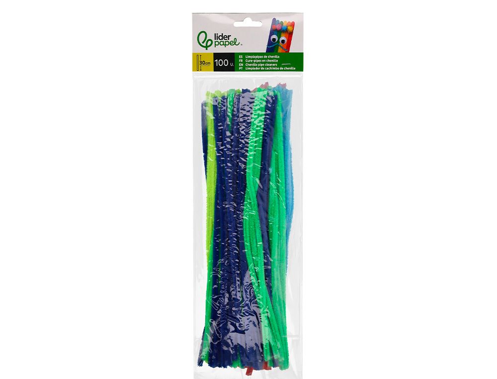 Limpiapipas de chenilla liderpapel 30 cm colores mate surtidos bolsa de 100 unidades