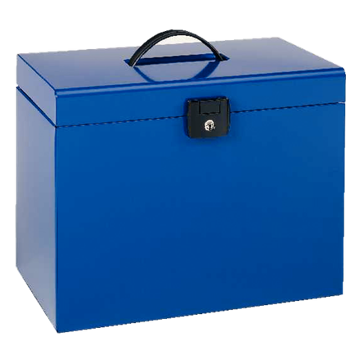 Este maletín metálico azul es la solución perfecta para tus documentos. Incluye 5 carpetas colgantes Kraft tamaño A4, ideal para organizar tu archivo de manera eficiente. Su cerradura con llave brinda seguridad y su asa permite un transporte cómodo. | Referencia Deskidea: ACC11895