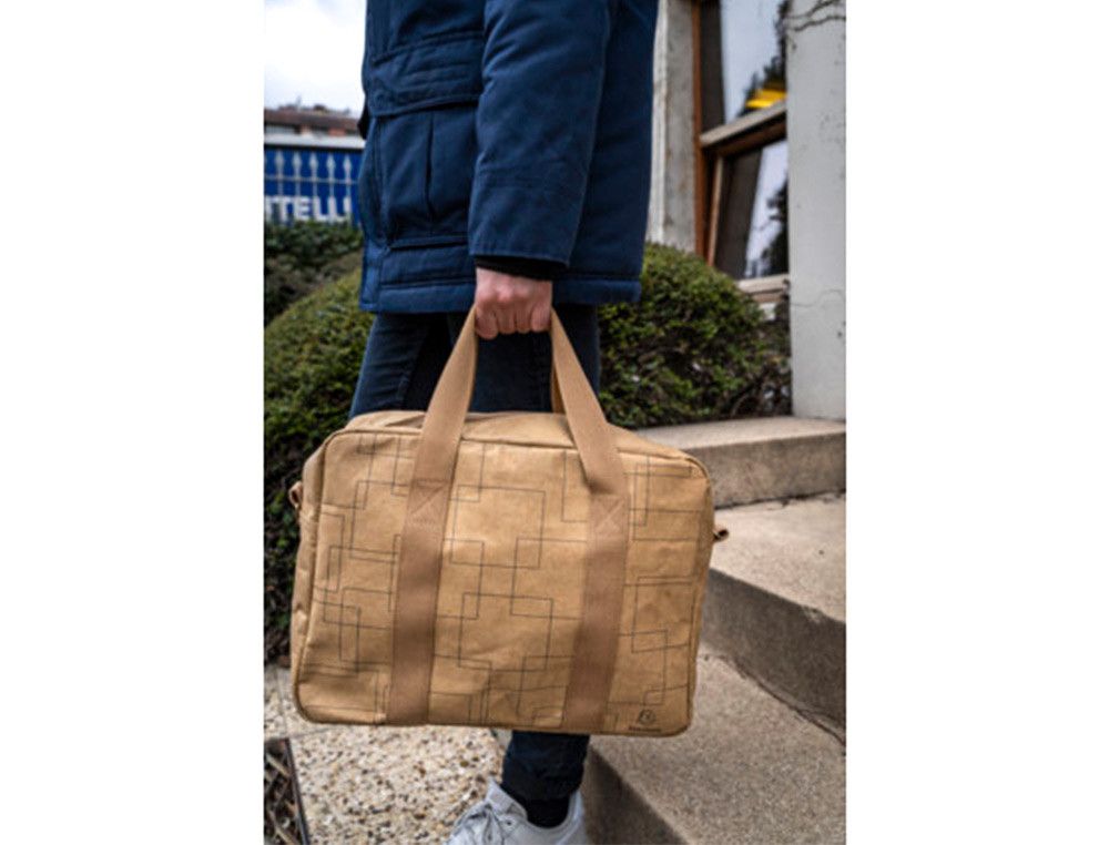 El Maletín para portátil Exacompta Eterneco 14" combina estilo y funcionalidad. Con su diseńo geométrico y material de cuero imitación vegetal, es resistente al agua y cuenta con varios bolsillos y un compartimiento seguro para tu ordenador. Perfecto para el profesional moderno. | Referencia Deskidea: 162297