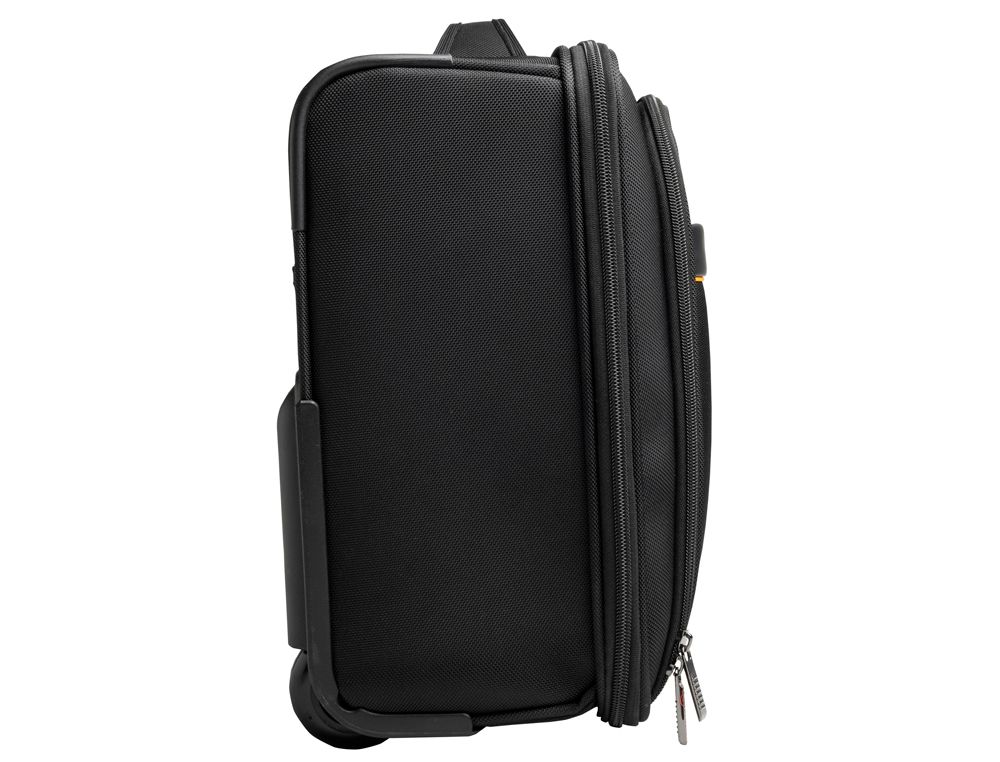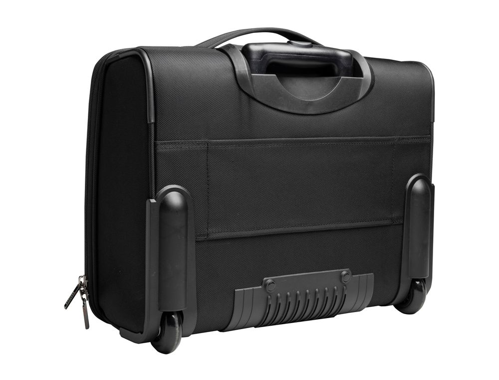 Trolley exatrolley slim con dos ruedas y con asa telescópica. Tiene un compartimiento principal con un bolsillo acolchado separado para dispositivoshasta 15,6\", así como correas cruzadas para guardar ropa o documentos. Un a cinta en su parte trasera permite apilarlo sobre una maleta. Tejido exterior y forro en poliéster 100% reciclado (rpet) procedente del reciclaje de 20 botellas de plásticos. Capacidad de 17 litros. Certificado grs. 2 ańos de garantía. | Referencia Deskidea: 171682