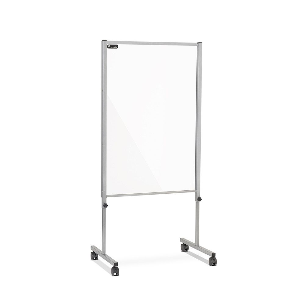 Descubre la Mampara Móvil de Metacrilato Regulable en Altura, perfecta para centros de estética y podología. Su robusta estructura de acero y pantalla acrílica de 3 mm ofrecen protección ante estornudos y contagios, asegurando la seguridad de tus clientes y tu equipo. | Referencia Deskidea: RCDCOV-CAM80