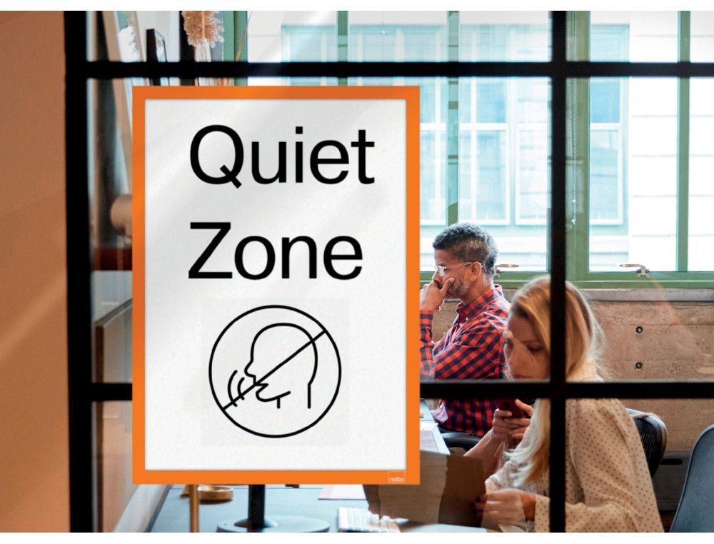 El marco porta anuncios Nobo DIN A3 es un marco magnético autoadhesivo que permite la exposición rápida y segura de carteles e información. Con un color naranja vibrante y un diseńo fácil de usar, incluye una tapa mate que protege el contenido y es perfecto para cualquier espacio. | Referencia Deskidea: 172003