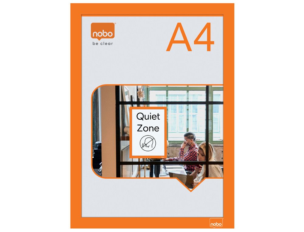 Descubre el marco magnético autoadhesivo Nobo para anunciar mensajes en formato A4. Su diseńo naranja aporta color y profesionalismo, además permite un cambio rápido de contenido, manteniendo siempre la información segura y limpia. ˇIdeal para cualquier espacio! | Referencia Deskidea: 172000