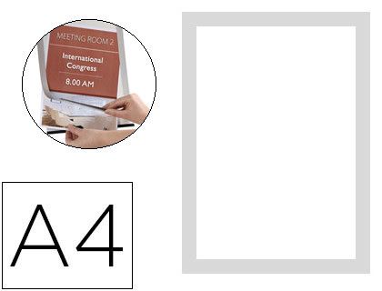 Marco porta anuncios q-connect magneto din A4 dorso adhesivo removible color plata pack de 2