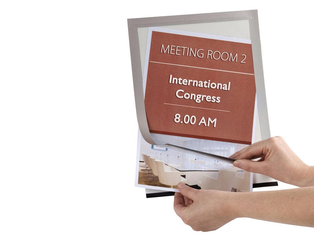 El marco porta anuncios q-connect magneto DIN A4, con dorso adhesivo removible y color plata, es ideal para presentar documentos de manera rápida y fácil. Su diseńo versátil permite fijarlo en superficies lisas, usándolo tanto en vertical como en horizontal. Pack de 2. | Referencia Deskidea: 78090