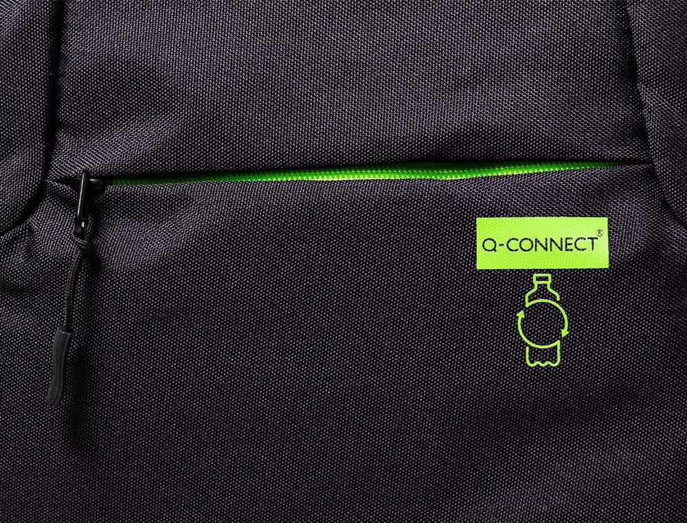 Descubre la mochila para portátil Q-Connect de 15,6". Ligera y práctica, fabricada con material reciclado, cuenta con dos bolsillos exteriores y un compartimento acolchado para proteger tu dispositivo. Ideal para el día a día y perfecta para llevar todo lo necesario contigo. | Referencia Deskidea: 163655