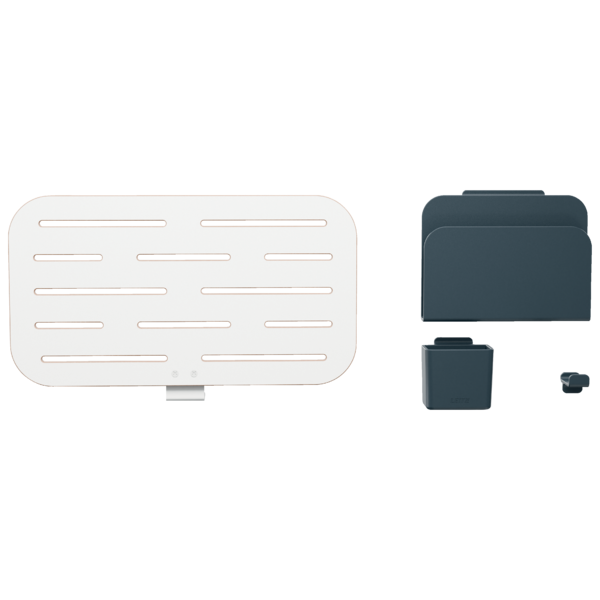 - Accesorios incluidos: Viene con un soporte para bloc de notas, un soporte para bolígrafos y un gancho para auriculares, todos fabricados con un 85% de plástico reciclado.