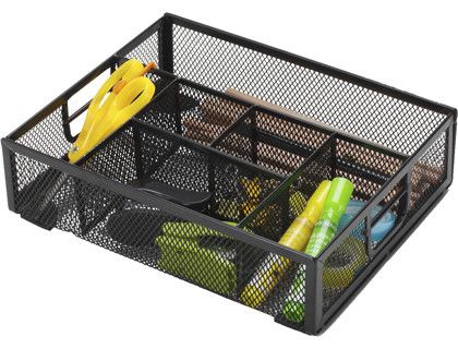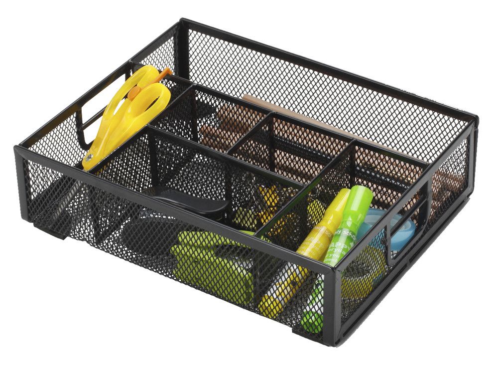 Organizador sobremesa q-connect kf17291 bandeja metalica rejilla negra con 6 departamentos 235x183x65 mm