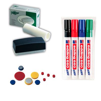 Pack 4 rotuladores, borrador magnético e imanes para pizarras magnéticas