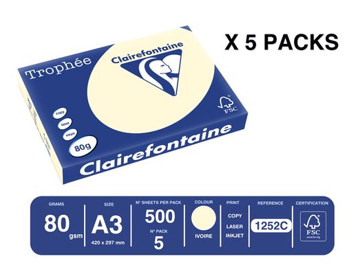 Papel color trophee A3 80gr crema pastel paquete de 500 hojas