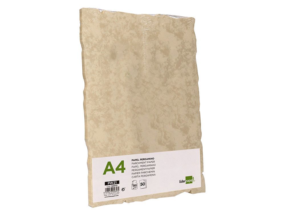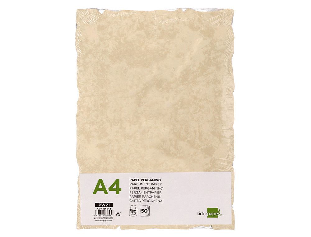 Papel pergamino liderpapel din a4 con bordes 180g/m2 color crema paquete de 50 hojas