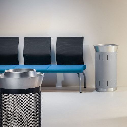 La papelera cenicero Lausanne es una solución elegante y funcional para espacios públicos, combinando un diseño de fundición de aluminio y chapa de acero. Su capacidad de 120L y la estructura robusta garantizan durabilidad y eficacia en la gestión de residuos. | Referencia Deskidea: MDSLSN 02D