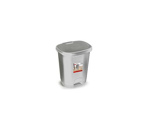 Papelera contenedor plasticforte plastico con tapadera y pedal 18 litros color plata 330x280x405 mm