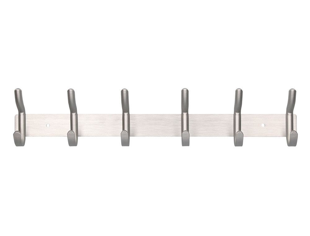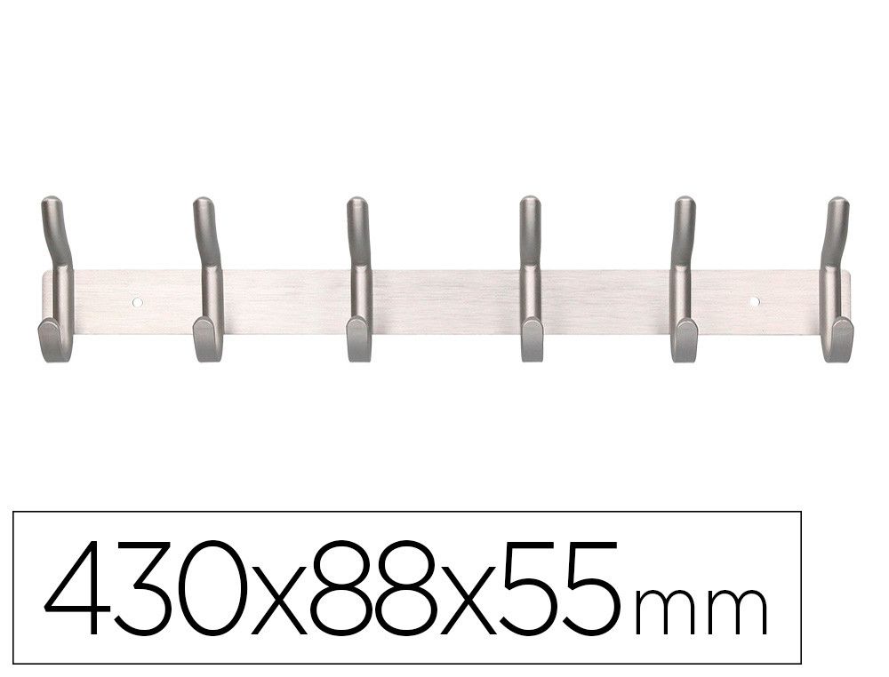 Perchero liderpapel pared metalico 6 colgadores color plata mate 430x88x55 mm
