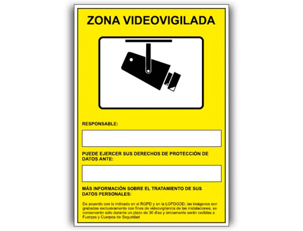 Pictograma archivo 2000 camaras de vigilancia en grabacion las 24 horas pvc amarillo luminiscente 210x297