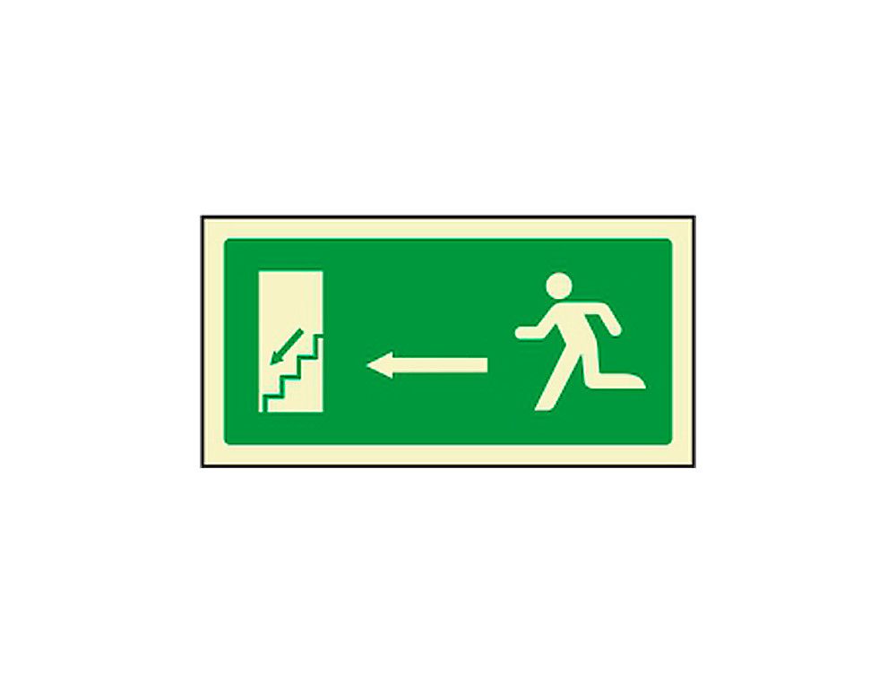 Pictograma Syssa Señal de Salida Emergencia Izquierda Escalera Bajando en Pvc Fotoluminiscente 320X160 Mm