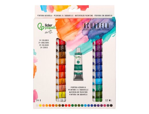 Pintura de acuarela liderpapel caja de 24 tubos de aluminio de 12 ml colores surtidos
