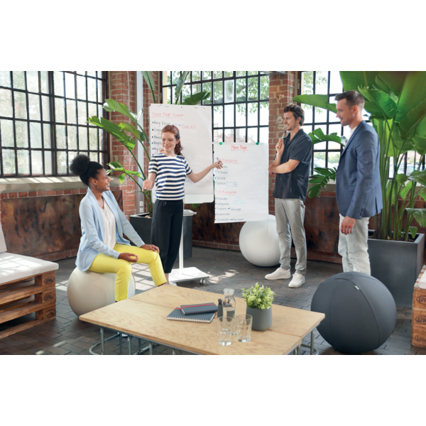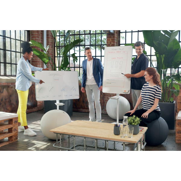 El caballete Flipchart móvil Move & Meet es la herramienta ideal para cualquier espacio de oficina colaborativo. Su diseño contemporáneo y funcionalidad lo convierten en un aliado en la creatividad y el trabajo en equipo.
