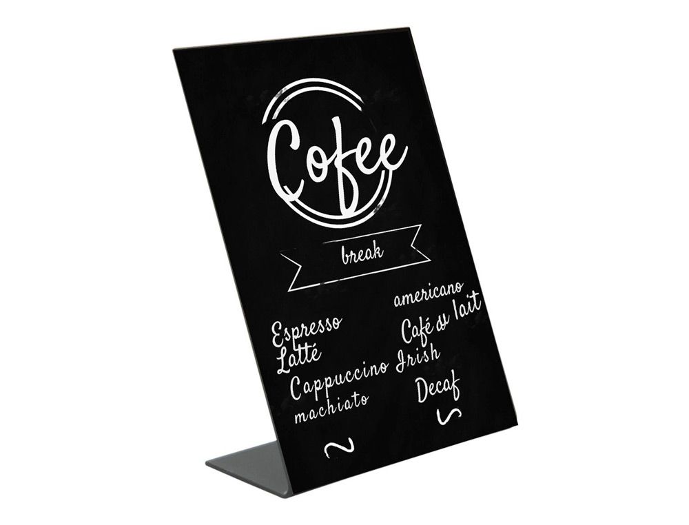 Pizarra de sobremesa archivo 2000 en forma de l A4 vertical metacrilato negro 100% reciclable 85x210x290 mm