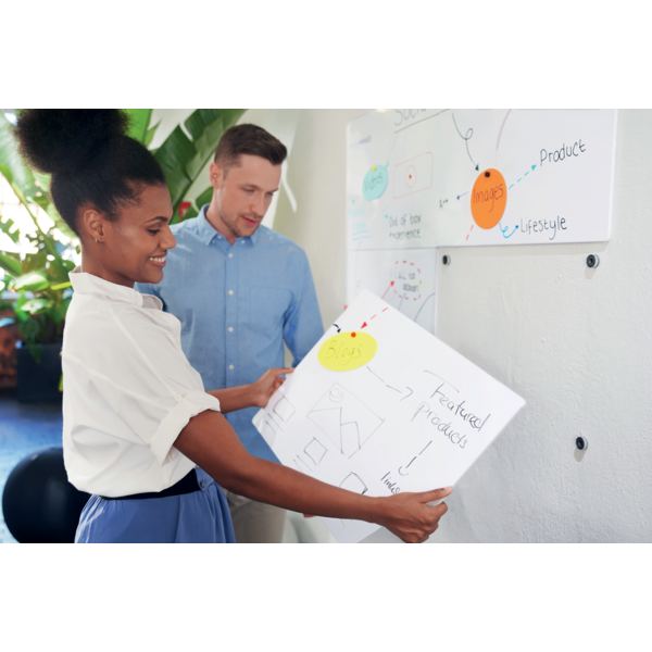 La pizarra modular sin marco de 450x450 mm es perfecta para cualquier oficina, con un diseño elegante y sistema de montaje magnético que permite una flexibilidad total. Ideal para trabajo colaborativo, ¡haz que tus ideas cobren vida fácilmente! | Referencia Deskidea: ACC1915655