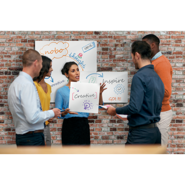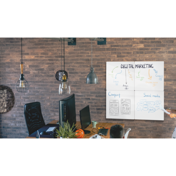 La pizarra sin marco es la herramienta perfecta para tu oficina: elegante, modular y con un sistema de montaje magnético que brinda flexibilidad. Ideal para anotaciones y colaboración. Tamaño 600x450mm. | Referencia Deskidea: ACC1915656
