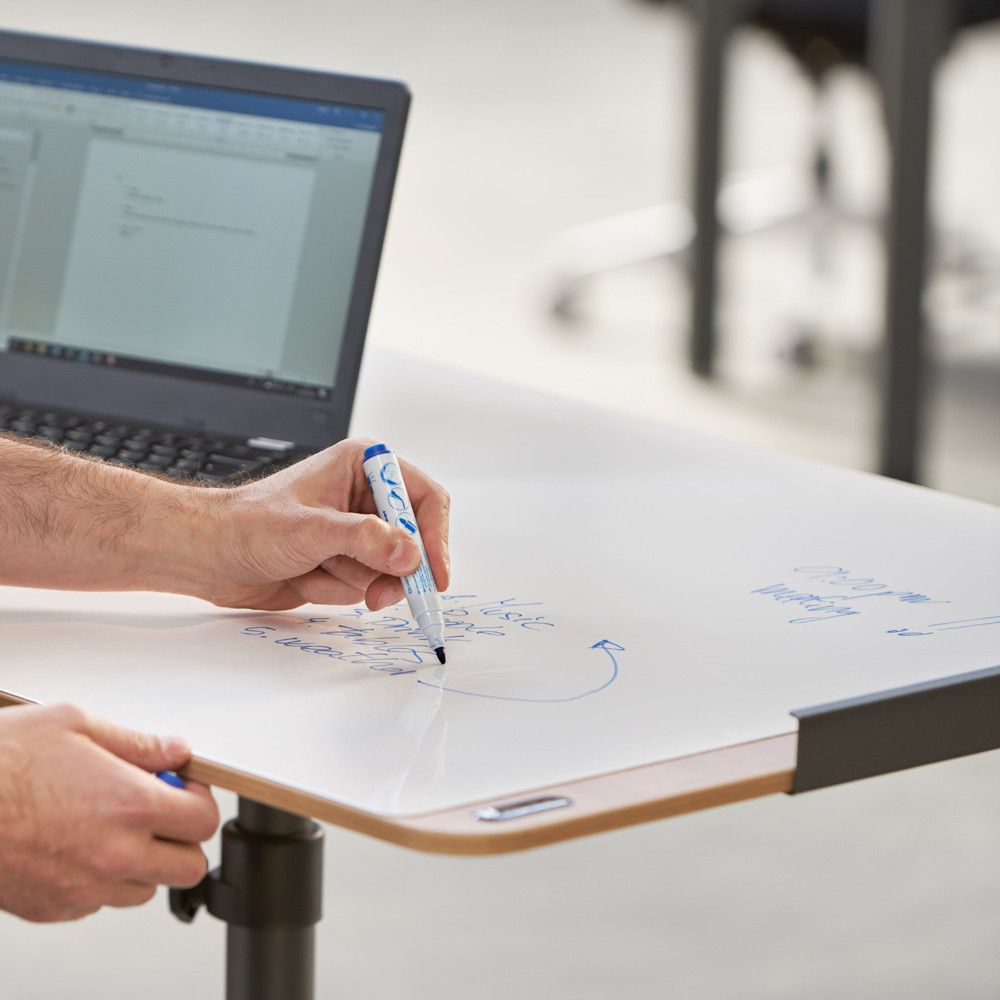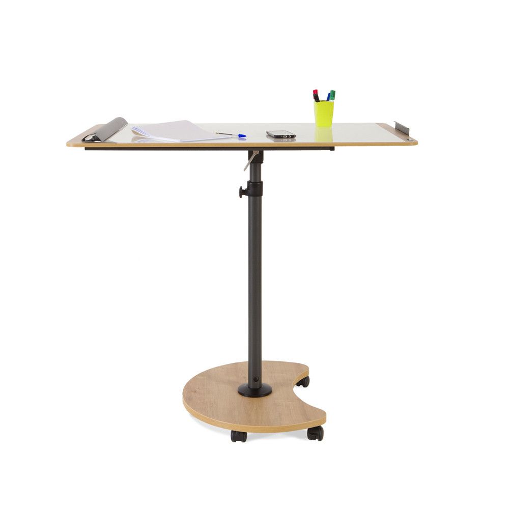 La pizarra móvil transformable en mesa lacada de la serie Natural es perfecta para cualquier espacio. Con su estructura metálica y ruedas, se adapta a tus necesidades. Es regulable en altura y fácilmente convertible en mesa, ideal para presentaciones y reuniones. ¡Dale vida a tus ideas! | Referencia Deskidea: RCDNAT0618