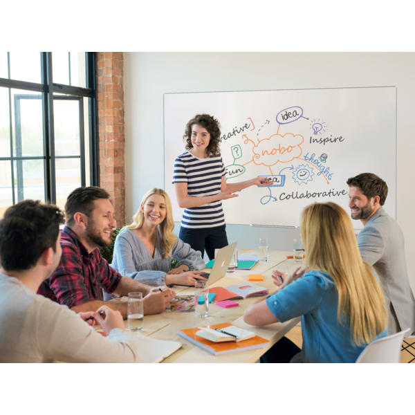 La pizarra magnética Nano Clean ™ de 1800x1200 mm cuenta con un elegante marco y el sistema de montaje InvisaMount ™ que oculta los soportes. Ideal para presentaciones y planificación, ofrece una superficie óptima y mayor capacidad de borrado. | Referencia Deskidea: ACC1915406