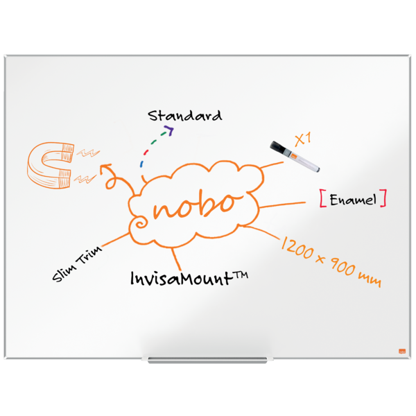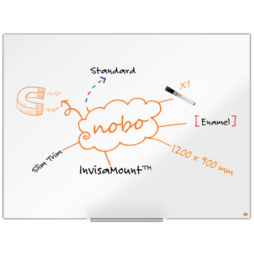 Pizarra de esmalte de 1200x900mm con un marco fino y sistema de montaje InvisaMount™. Ideal para ambientes colaborativos y presentaciones efectivas. | Referencia Deskidea: ACC1915396