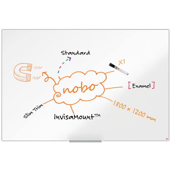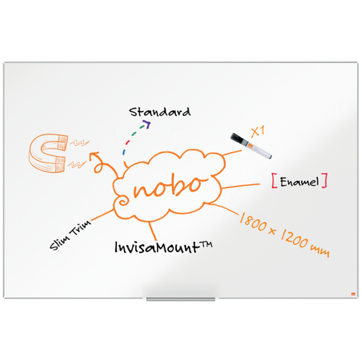Pizarra de esmalte de 1800x1200mm con un marco fino y sistema de montaje InvisaMount™. Ideal para un uso frecuente y con un elegante diseño para cualquier espacio. | Referencia Deskidea: ACC1915399