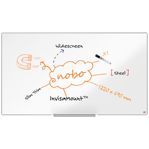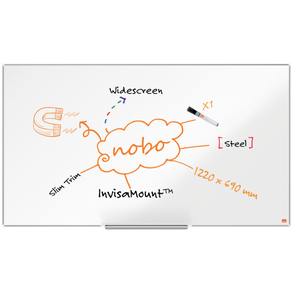 Pizarra NOBO Impression Pro de formato panorámico acero lacado de 55", 1220x690mm, blanco