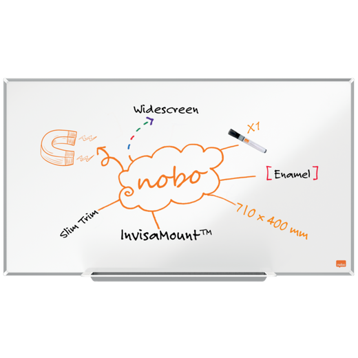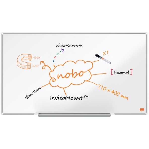 Descubre la Pizarra NOBO Impression Pro de formato panorámico, diseñada para optimizar tus presentaciones y sesiones de trabajo. Con dimensiones de 710x400mm y una superficie de acero vitrificado, esta pizarra es ideal para un uso frecuente.