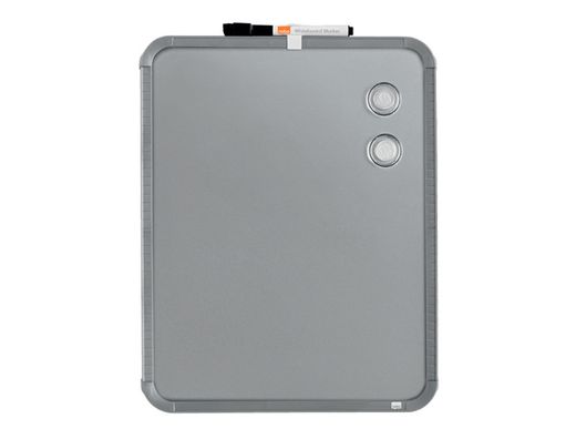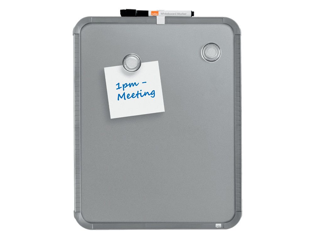 Transforma tu espacio con la Pizarra Nobo magnética. Con un elegante marco plateado y un diseño compacto (280x360 mm), esta pizarra es ideal para cualquier entorno, ya sea en casa o en la oficina.