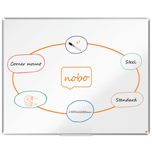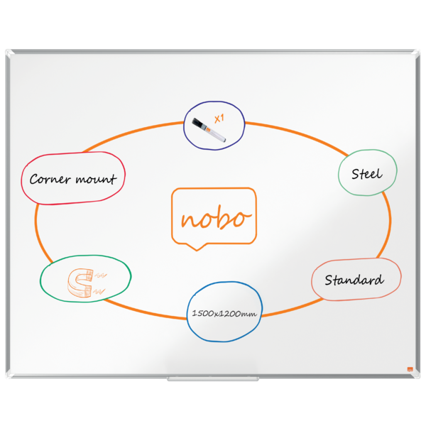 Descubre la elegancia y funcionalidad de la Pizarra NOBO Premium Plus, diseńada para facilitar tus presentaciones y sesiones de brainstorming.