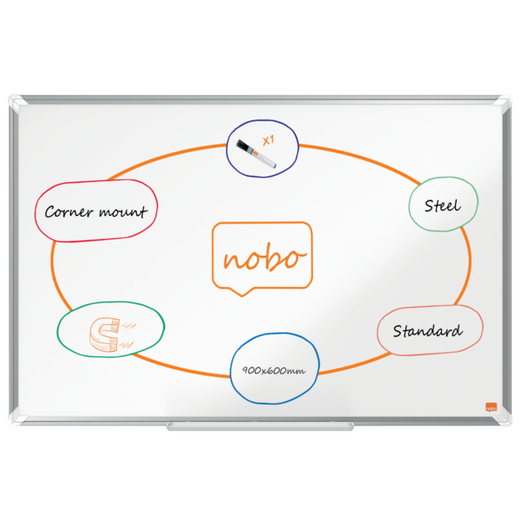 Transforma tu espacio con la pizarra magnética NOBO Premium Plus de 900x600 mm. Esta pizarra combina funcionalidad y estilo, ofreciendo: