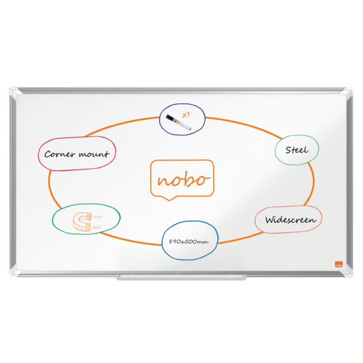 Pizarra NOBO Premium Plus de formato panorámico acero lacado de 40", 890x500mm, blanco