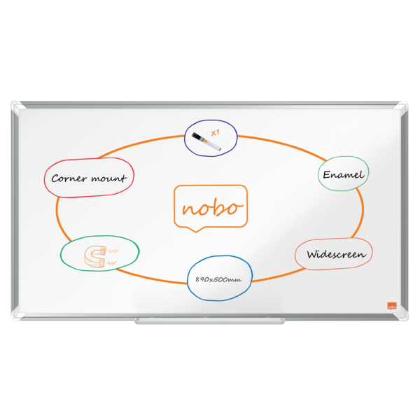 Pizarra NOBO Premium Plus de formato panorámico acero vitrificado de 40", 890x500mm, blanco