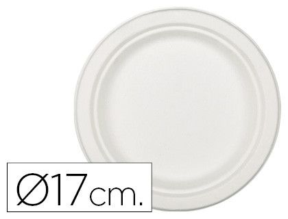Plato de fibra natural nupik biodegradable blanco 17 cm de diametro apto microondas paquete de 50 unidades