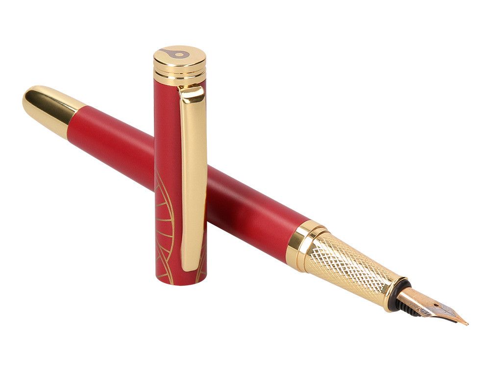 Pluma belius soiree aluminio color art deco granate y dorado tinta azul caja de diseño