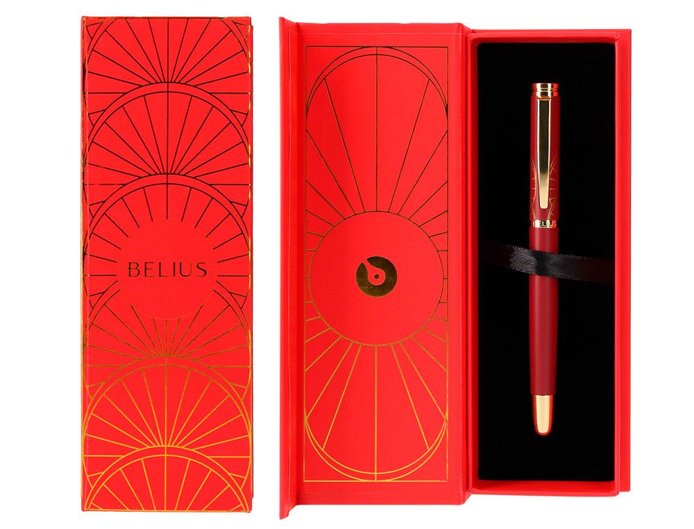La pluma Soirée de Belius combina un elegante diseńo Art Deco en granate y dorado con su exquisita tinta azul. Presentada en una sofisticada caja magnética, es perfecta para aquellos que buscan un toque de glamour clásico y modernidad en cada escritura. | Referencia Deskidea: 168852